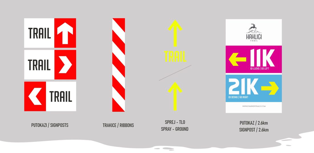 Osim crveno-bijelih traka staza će na pojedinim mjestima biti označena tabelicama s natpisom TRAIL, a dijelovi staze koji prolaze asfaltiranim cestama bit će označeni žutim sprejanim strelicama (ponegdje duple strelice, smjer početka i završetka utrke).