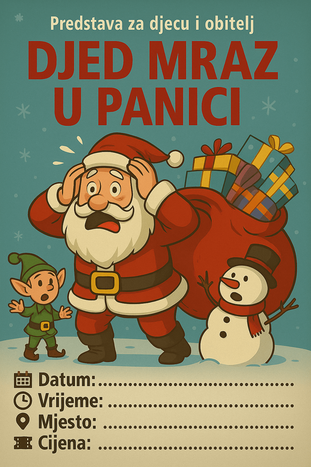Djed Mraz je u panici, izgubio je darove namijenjene djeci! Zajedno uz djecu koji postaju njegovi mali vilenjaci kreće u potragu za darovima.